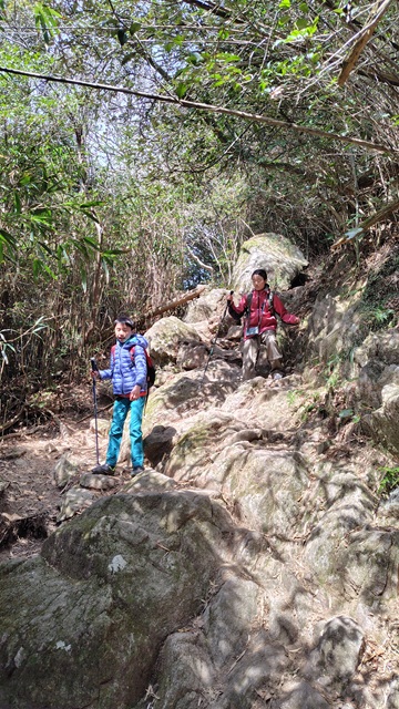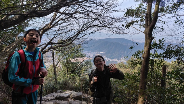 私たちは、久しぶりの登山ということもあって、かなりゆっくりなペースで登った。正面ルートは、休憩用のベンチも多く配置されており、登りやすい。山の中は、ひんやりとしていて気持ちが良い。久しぶりにこの感覚を味わった。子供たちも、楽しそうであった。