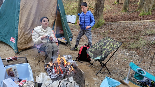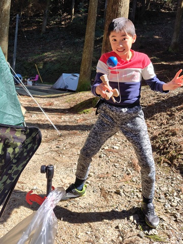 夜は、いつものように妻とビデオ通話をして、光る棒を振り回しではしゃぎにはしゃいで、寝た。夜は、結構寒かった。ふたつの寝袋を連結してひとつの大きな寝袋にし、優一を真ん中にして固まって寝たら、何とか眠れた。